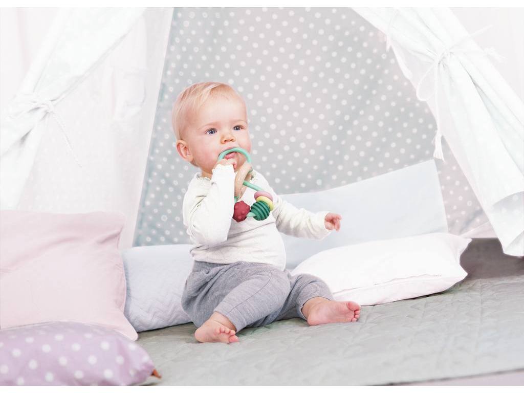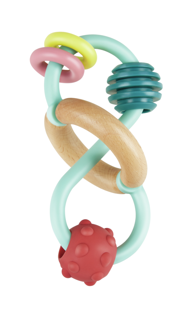 🌿 Hecho de madera lisa y barras de silicona suave 100% seguras para masticar, ¡es ideal para que los peques exploren de manera segura y divertida!