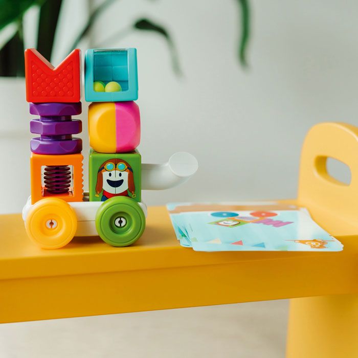 ¡Listos para la aventura! 🌟 My First Build & Drive es un juego 2 en 1 que combina construcción y diversión sobre ruedas. Perfecto para niños desde 18 meses, les permite explorar el magnetismo de forma segura mientras crean y experimentan. Para los más grandes (+2,5 años), el desafío se intensifica con 24 retos progresivos.