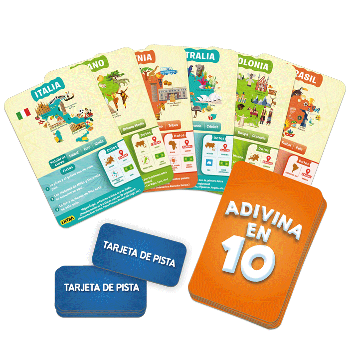 Pon a prueba tus conocimientos sobre geografía con este divertido juego de deducción. Haz hasta 10 preguntas para descubrir qué país se esconde en la tarjeta. ¡Usa bien tus Tarjetas de Pistas y adivina antes que nadie! 🏆