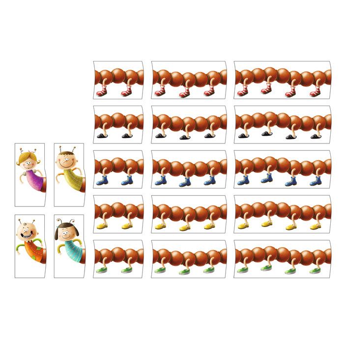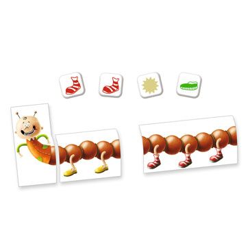 3️⃣ Según la combinación obtenida, elige una pieza de zapatos y la añade a su ciempiés.