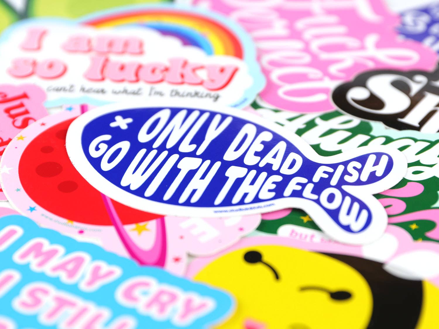 Sticker Only dead fish es una divertida pegatina de vinilo para botellas de agua, ordenadores portátiles, bicicletas, teléfonos y mucho más. Esta calcomanía está impresa en vinilo brillante de 90 micras con tintas resistentes a la intemperie. Por lo tanto, la vida útil es de al menos 3 años solo para uso en exteriores. La pegatina es adecuada para regalar a tus amigos o conocidos. O cómpralo para ti.