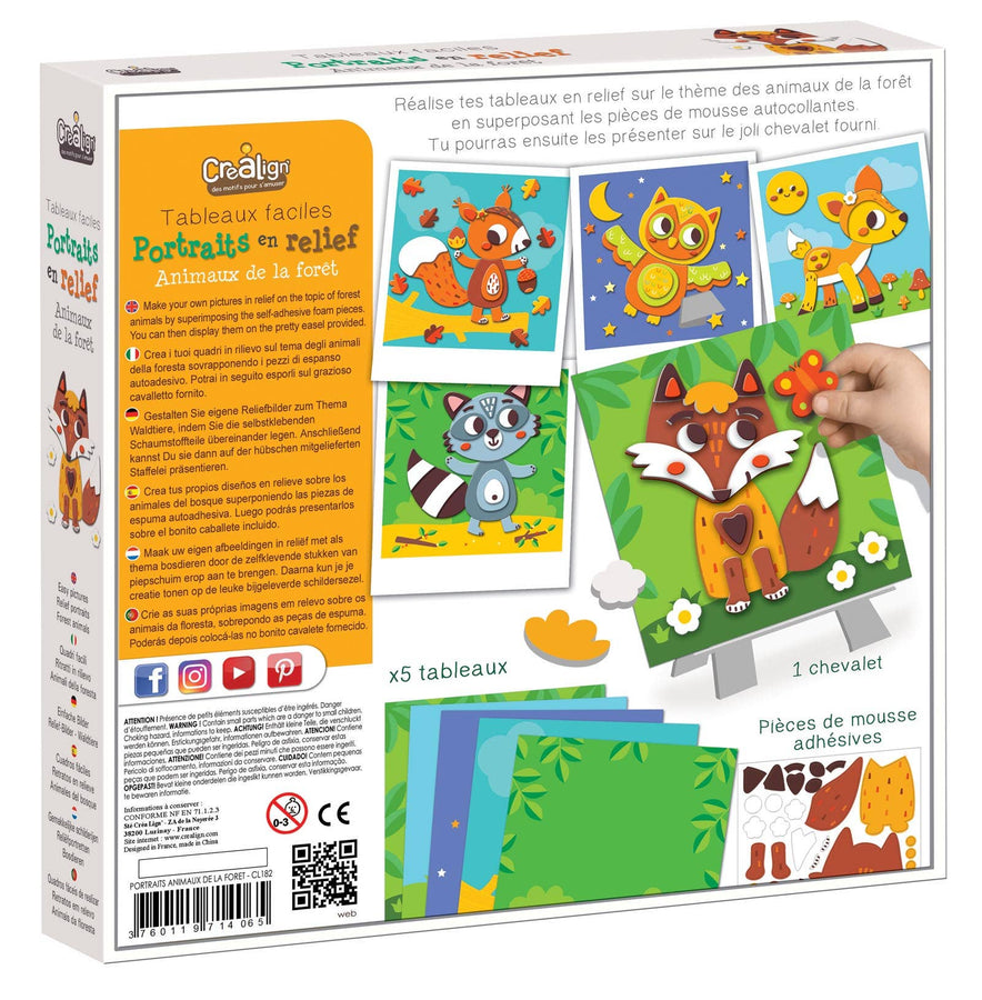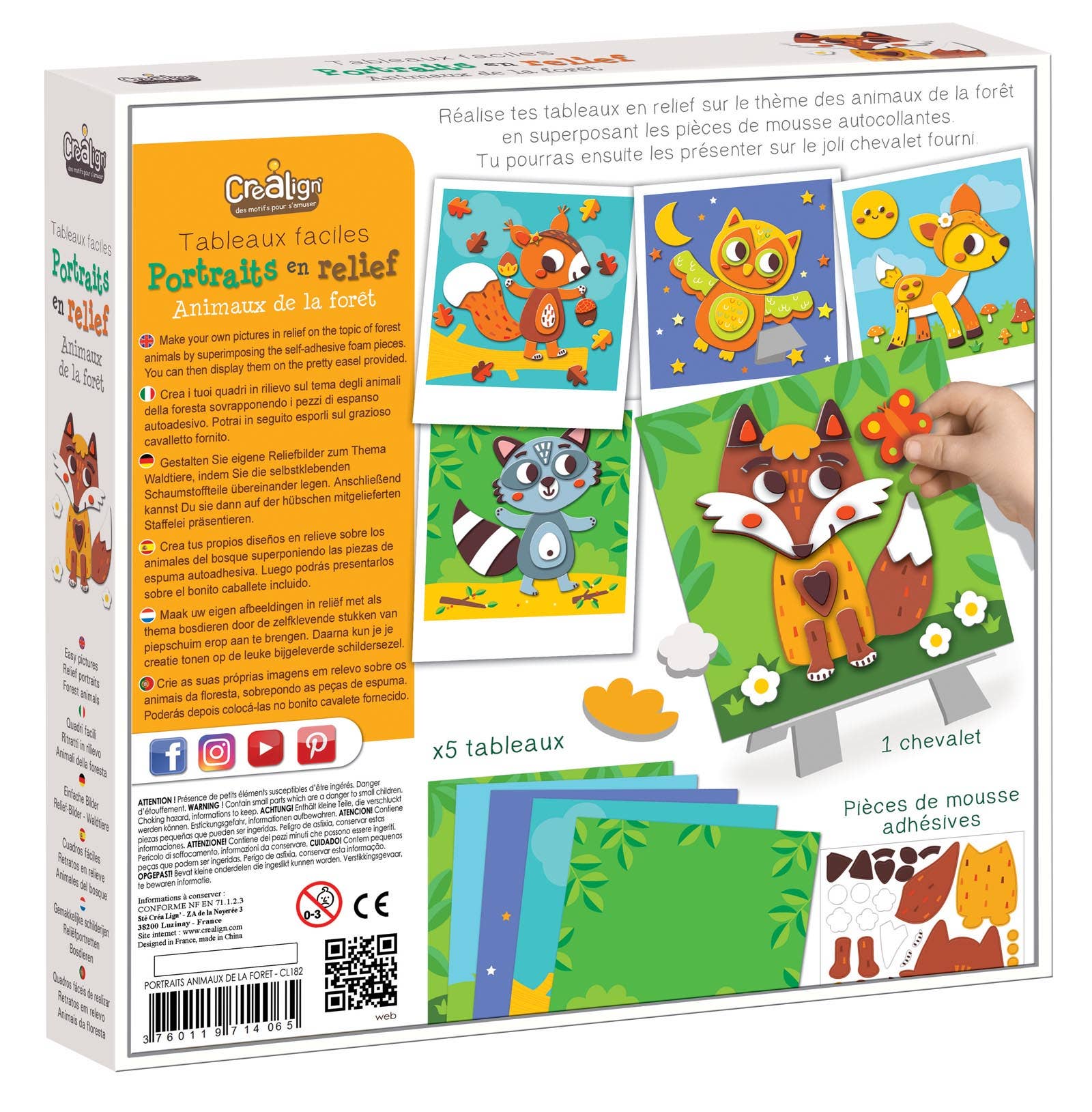 Para montar y componer animales del bosque gracias a las piezas de espuma gruesas y autoadhesivas precortadas.