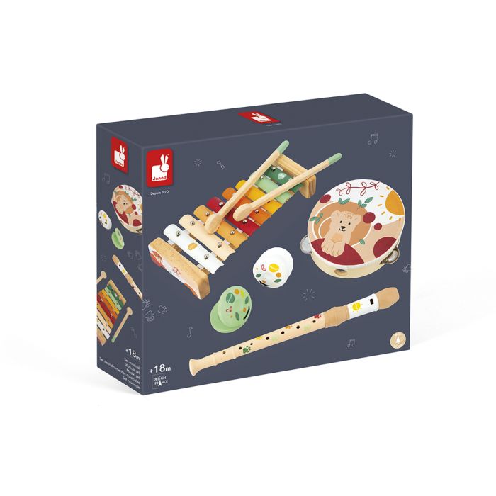 Este encantador conjunto de 5 instrumentos musicales de madera es ideal para que los niños a partir de 18 meses descubran el mundo de la música mientras se divierten. 🎵🌈