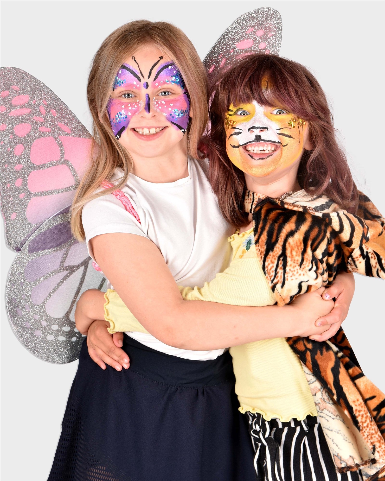 🎨 Crea diferentes estilos con el glitter y las pinturas faciales, perfectas para juegos de disfraces o cualquier ocasión especial.