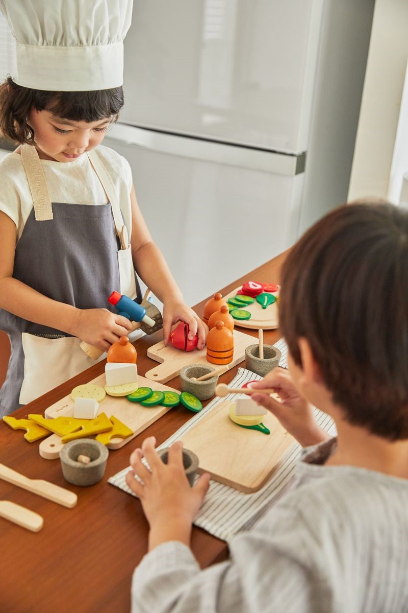 🧠 Fomenta el juego simbólico y el aprendizaje a través de la cocina, desarrollando habilidades como la coordinación motora fina y el pensamiento creativo mientras preparan su propia tabla de aperitivos.