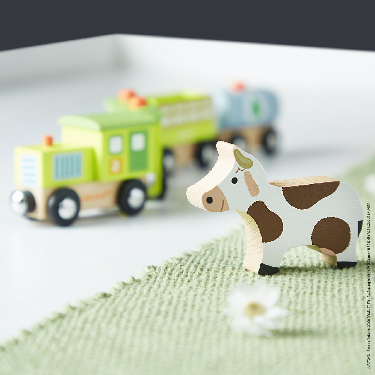 Con sus piezas magnéticas que se conectan fácilmente, los niños pueden organizar su tren a su manera, haciendo viajar a sus animales favoritos. ¿Quién viajará en el primer vagón? ¿Qué animales visitarán la granja? Las posibilidades son infinitas, ¡y la imaginación no tiene límites! 🌟