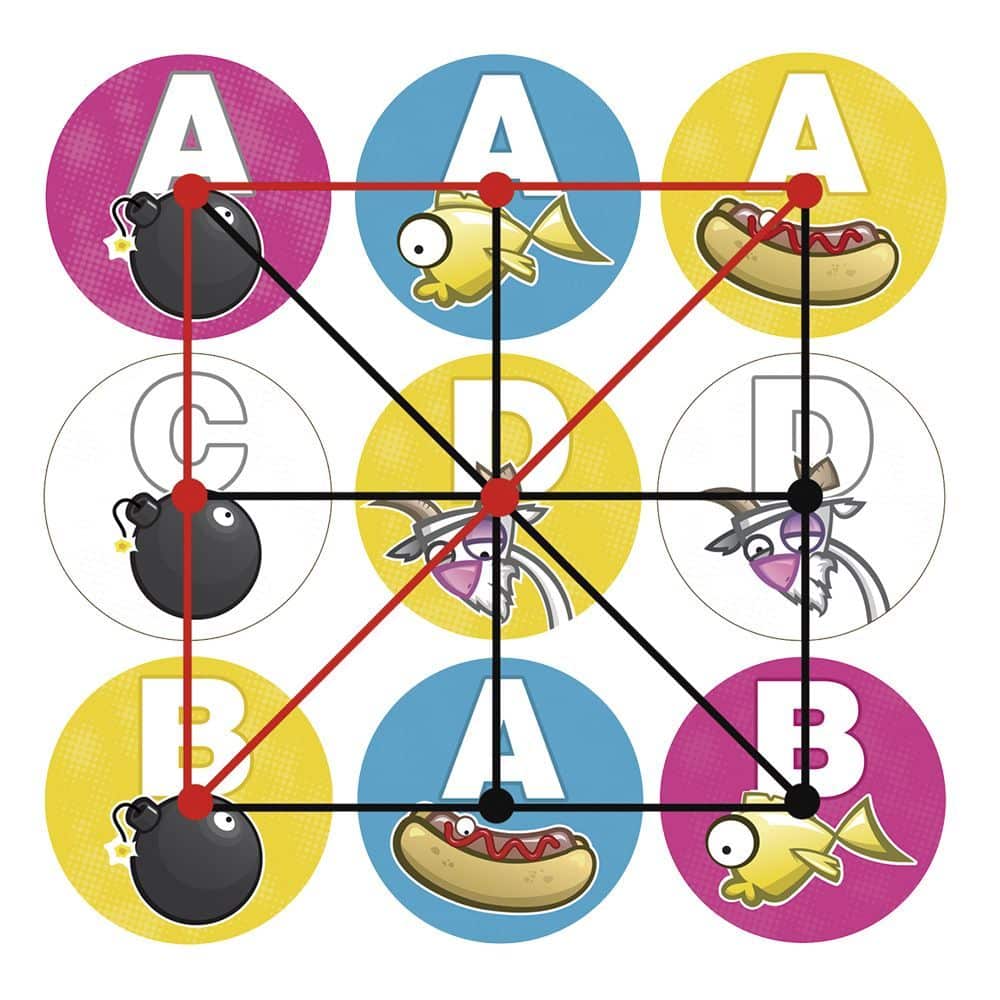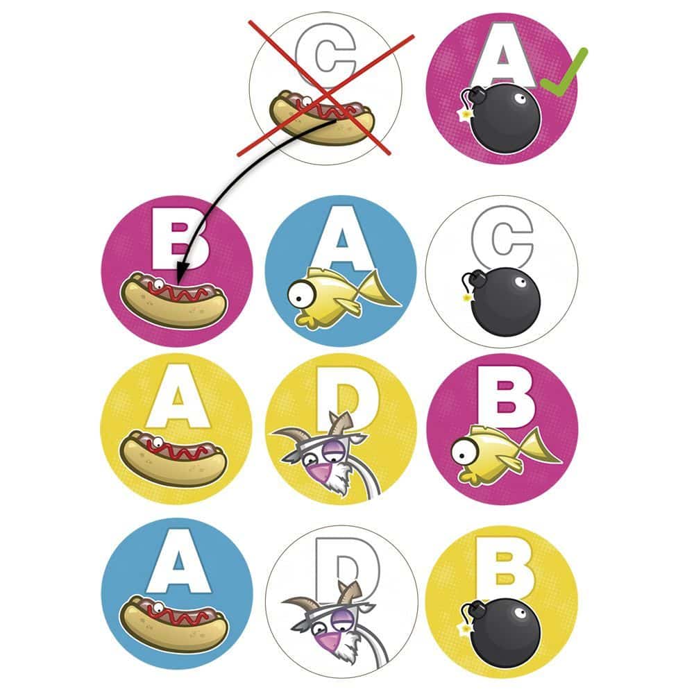 1️⃣ Busca dos cartas en línea que compartan una misma característica: color, letra o imagen.