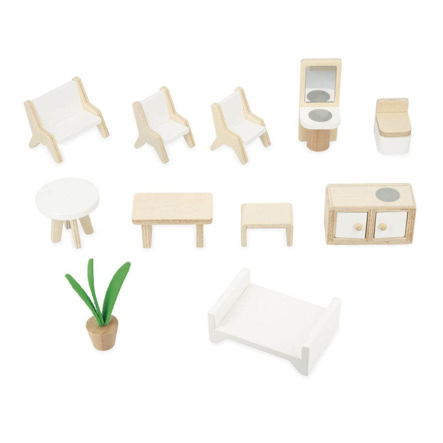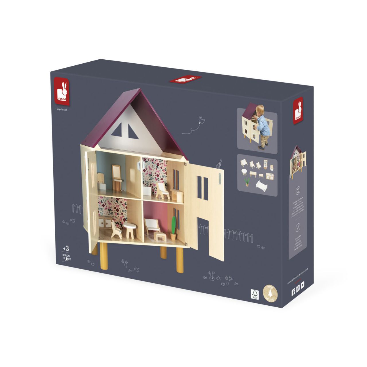 Con tres plantas y 11 accesorios de madera, esta acogedora vivienda es el lugar perfecto para que los niños a partir de 3 años den rienda suelta a su imaginación y creen historias increíbles. Desde el salón con sofá y mesita hasta el dormitorio con cama y mesa, pasando por el comedor y el cuarto de baño completamente amueblados, ¡cada rincón está listo para disfrutar! 🛋️🪑