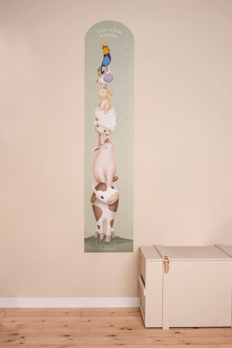 Esta tabla de altura de vinilo, diseñada con adorables motivos de la colección Pequeña Granja, es perfecta para seguir la progresión de crecimiento de tu hijo de manera divertida y decorativa. 🐮🌾