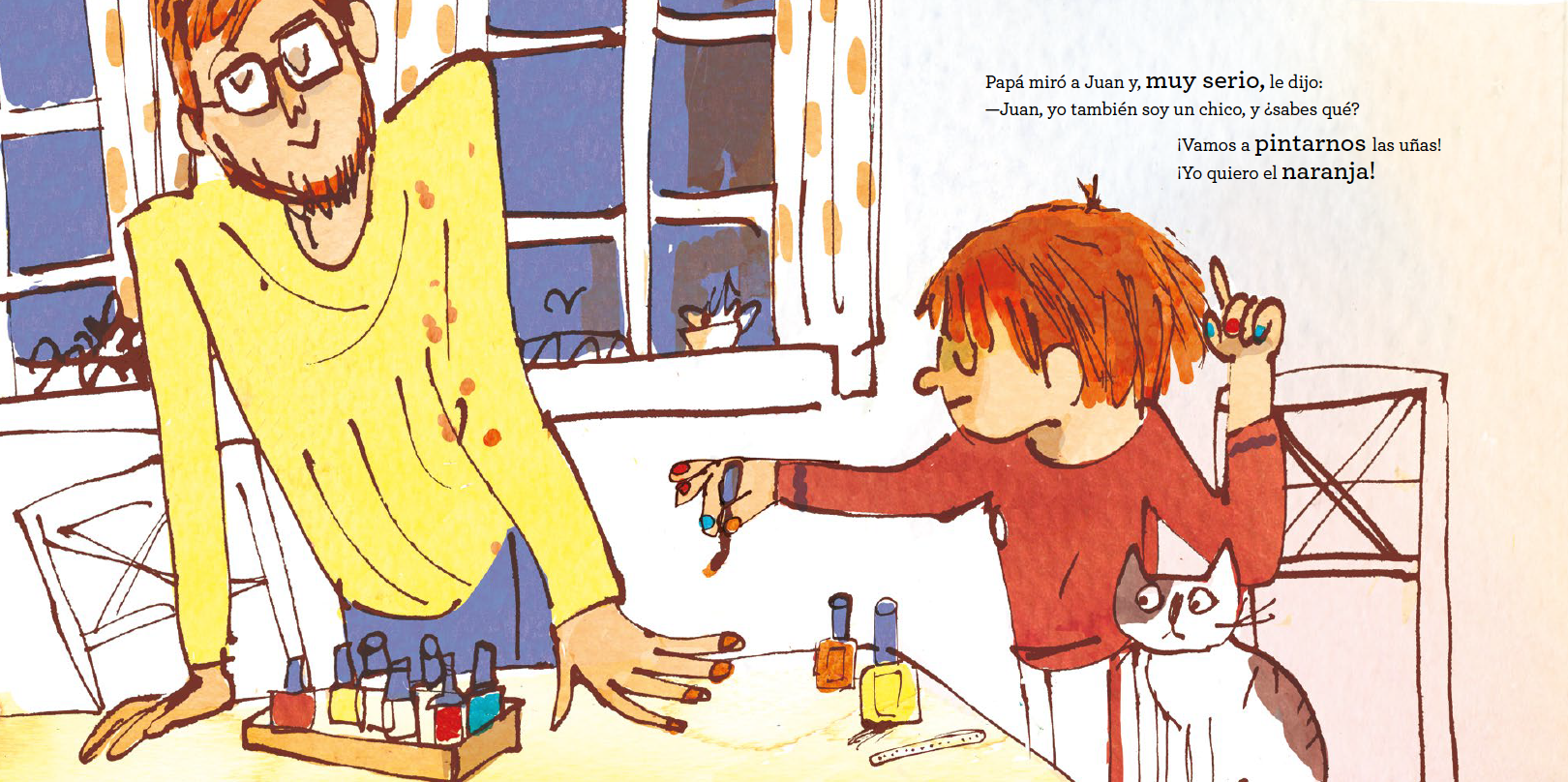 A Juan le gustaba pintarse las uñas y cuando se rieron de él en el colegio, su padre decidió apoyarle y pintárselas él también. Esta es una historia inspirada en hechos reales.